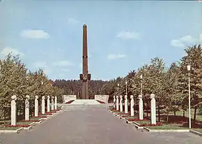 - Памятник-обелиск и чаша вечного огня;