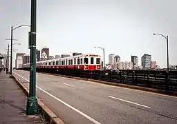Вагоны красной линии на мосте «Лонгфеллоу»
