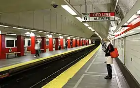 Красная линия (англ. Red Line) — одна из четырёх линий Бостонского метрополитена в городе Бостон, Массачусетс, США. [2] Линия начинается в северном пригороде Бостона Кембридж, и проходит через центр Бостона, после чего она разделяется на две линии: Линия «Брейнтри» заканчивается в южных пригородах Куинси и Брейнтри, а линия «Ашмонт» заканчивается в районе Дорчестер, где она присоединяется к высокоскоростной линии Ашмонт-Маттапан.