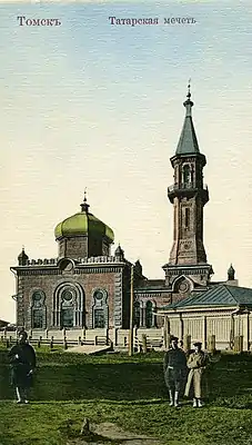 Первые томские мечети были деревянными, первая из них была построена в 1810 году, затем сгорела. На её месте, на углу улицы Татарской и переулка Татарского (ныне улица Трифонова), была построена вторая деревянная мечеть, которая также сгорела в 1900 году.