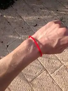 Красная нить — талисман в виде красной шерстяной нити, которая завязывается вокруг запястья левой руки. Талисман ассоциируется с иудейскими каббалистическими традициями. Предполагается, что данный талисман может защитить от зависти и сглаза .