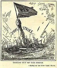 22 сентября начинается забастовка рабочих металлургической промышленности, работавших в корпорации US Steel, условия труда в которой были особенно тяжёлыми. В городах Гомстед, Нью-Касл, Буффало проходят столкновения рабочих с заводской охраной. По данным профсоюза, в общей сложности забастовка охватила до 280 тыс. рабочих из 350 тыс. 29 сентября забастовка перекидывается на сталелитейную корпорацию Bethlehem Steel, в ней участвуют до 25 % её рабочих. Окончательно забастовки металлургов завершаются 9 января 1920 года.