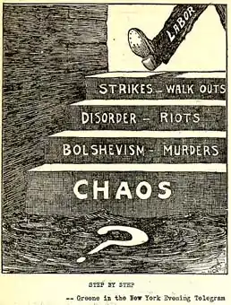Влиятельная газета «Нью-Йорк Таймс» летом 1919 года обвиняет в насилии радикальный профсоюз «Индустриальные рабочие мира», большевизм и «другие экстремистские радикальные движения». В октябре газета обвиняет радикалов в ведении среди чёрного сообщества «большевистской пропаганды», «распространяющей доктрины Ленина и Троцкого».