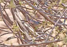 Самка окрашена подобно самцу, только на спине нет красного оттенка, на боках лишь слабый красный оттенок, а нижние кроющие хвоста тёмно-коричневые[2].
