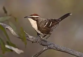 Красноголовая шилоклювая тимелия (лат. Pomatostomus ruficeps) — вид мелких по размеру птиц рода Pomatostomus из семейства шилоклювых тимелий (Pomatostomidae). Эндемики Австралии. Птицы являются шумными и очень социальными, живут группами до 23 особей, которые кормятся и размножаются совместно[1].