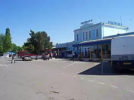 Рядом с вокзалом располагается одноимённый автовокзал, остановки автобуса, трамвая и троллейбуса.