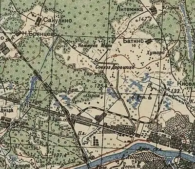 Коммуна Маяк на фрагменте карты 1930-х годов