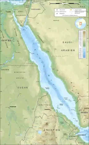 Кра́сное мо́ре (др.-греч. Ἐρυθρὰ Θάλασσα, Эритра Таласса; араб. البحر الأحمر, Bahr el-Ahmar; ивр. ים סוף,Yam Suf; англ. Red Sea; тигринья ቀይሕ ባሕሪ, Кэй-Бахри; сомал. Badda Cas) — внутреннее море Индийского океана, расположенное между Аравийским полуостровом и Африкой в тектонической впадине. На севере море примыкает к Суэцкому перешейку, который разделяет два залива: Суэцкий и Акаба, — через Суэцкий канал соединяется с Средиземным морем, а с Аравийским морем на юге соединяется Баб-эль-Мандебским проливом («Врата слёз») с Аденским заливом. Красное море — одно из самых солёных морей Мирового океана[1].