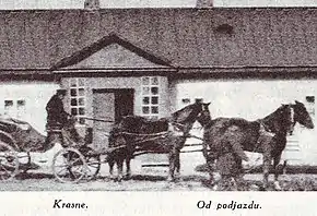 В 1941-м году пулемётным огнём немецкого десанта с колокольни костёла, было в упор расстреляно и погибло более 300 советских воинов, отступавших и остановившихся на привал на берегу речушки Краснянка, которая разделяла село на две части. Все они покоятся в братской могиле в центре села. Имена большей части из них неизвестны.
