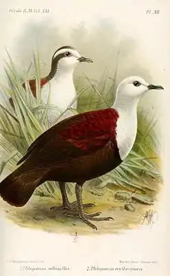 ![]() Иллюстрация D. e. albicollis и D. e. erythroptera от Герарда Йоханнеса Кёлеманса, 1893 | ||||||
