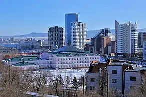 Административный центр Красноярского края (второго по площади субъекта Российской Федерации)[11] и городского округа город Красноярск. Центр Восточно-Сибирского экономического района. Красноярск неофициально именуют столицей Сибири[12].