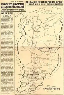 Постановлением Президиума ВЦИК от 7 декабря 1934 года вследствие разукрупнения Западно-Сибирского и Восточно-Сибирского краёв был образован Красноярский край[13].