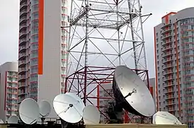 - одна передающая земная станция спутниковой связи для врезки местных телеканалов в первый мультиплекс;