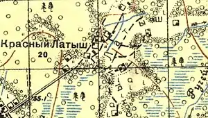 Согласно топографической карте 1937 года, деревня называлась Красный Латыш и насчитывала 20 крестьянских дворов.