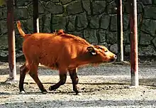 Красный буйвол[1][2], или карликовый лесной буйвол[3] (лат. Syncerus caffer nanus) — парнокопытное млекопитающее из семейства полорогих, подвид африканского буйвола (Syncerus caffer). В настоящее время некоторыми исследователями выделяется в самостоятельный вид Syncerus nanus[3]. Самый маленький из всех подвидов африканского буйвола. Рога направлены вверх и назад. Высота в холке около 120 см, масса тела в среднем составляет 270 кг. Окрас рыжий, с более тёмными участками на голове и плечах. Шерсть на ушах образует кисточки. Красный буйвол распространён в экваториальных лесах Центральной и Западной Африки. Главным врагом лесных буйволов в природе считается леопард. У самок рога немного меньше, чем у самцов.