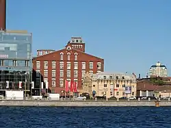 ![]() Вид с Выборгской набережной на прядильный корпус мануфактуры | |