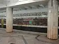 Стены, пол и потолок облицованы мрамором светлого и тёмно-красного тонов. Путевые стены отделаны тёмно-красным мрамором «Буровщина» (Иркутская область)[1], использовавшийся в отделке станций Московского[3] и Харьковского метрополитенов.