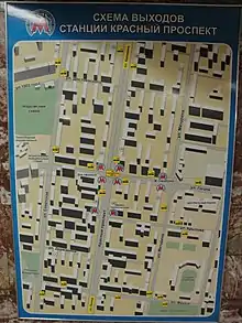 - «Красный проспект» — Схема станции на оф. сайте Новосибирского метрополитена (недоступная ссылка). Дата обращения: 19 января 2013. Архивировано 9 ноября 2013 года.