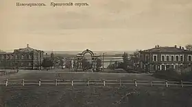 На площади в 1805 году была построена деревянная часовня, ставшая впоследствии кафедральным Вознесенским собором, строившимся много лет. Когда 1 января 1864 года началось движение по железной дороге, проходящей по юго-восточной и южной стороне города, Крещенский спуск лишился прямого выхода к лугу и реке Аксай. В нижней его части был построен железнодорожный вокзал и организована большая Железнодорожная площадь. C постройкой вокзала, на нём стали принимать официальных гостей, прибывающих в Новочеркасск, и к Крещенскому спуску перешла важная функция их приёма с сопровождением к Николаевской площади (ныне площадь Ермака) — главной площади города. Ранее миссию приёма высоких гостей принадлежала Санкт-Петербургскому проспекту (ныне спуск Герцена).