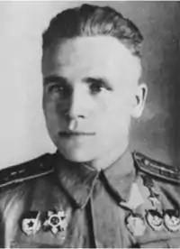 К сентябрю 1943 года будучи старшим лейтенантом командовал эскадрильей 667-го штурмового авиаполка (292-й штурмовой авиадивизии, 5-й воздушной армии, Степного фронта). К этому времени он совершил 197 боевых вылетов на штурмовку скоплений боевой техники и живой силы противника, принял участие в 15 воздушных боях, сбив 2 вражеских самолёта лично и ещё 6 — в составе группы[1].