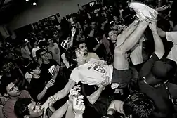 Крауд-сёрфинг (англ. Crowd surfing) — действие публики музыкальных концертов, при котором человека передают над головами от человека к человеку, тем самым он «плывёт» от одной части зала в другую. «Сёрфингиста» передают над головами аудитории, руки нескольких человек, поддерживая вес этого человека. На большинстве концертов и фестивалей сёрфингиста перемещают к барьеру перед сценой, где он будет снят и поставлен на ноги службой безопасности. Затем он будет отправлен обратно в задние ряды либо в конец барьера, или его могут вовсе выпроводить с концерта (в зависимости от политики безопасности).