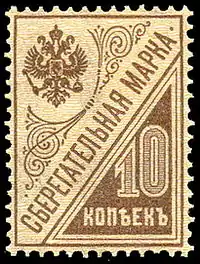 Сберегательные марки — одна из форм организации мелких сбережений. Известны двух назначений: учётного и накопительного. Первые использовались в повседневной работе сберегательных касс для контроля приходных денежных операций. Вторые покупались клиентами на мелкие сбережения и затем, по накоплению определённого количества, сдавались в сберегательные кассы для зачисления соответствующих сумм на счёт вкладчика. В Российской империи сберегательные марки применялись с 1890 года[≡]. Самостоятельные выпуски производило почтовое ведомство Великого княжества Финляндского. После 1917 года в межвоенный период, сберегательные марки выпускались в республиках Прибалтики и на Западной Украине. В Российской империи в 1916—1917 годах и в Советском Союзе в 1924—1930 годах в качестве накопительных сберегательных марок использовались почтовые марки, находящиеся в обращении.