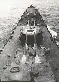 - Основное вооружение из пятнадцати 155-мм орудий в трёхорудийных башенных установках и четырёх строенных 610-мм торпедных аппаратов на верхней палубе, по два на борт. Более того, оговаривалась возможность замены трёхорудийных 155-мм установок на двухорудийные 203-мм после выхода из договоров об ограничении морских вооружений или в случае необходимости, в соответствии с постановлением Высшего военного совета от 23 июля 1930 года.