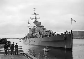 Уже в ходе войны перестроили ещё 2 крейсера типа «С» — «Коломбо» (англ. Colombo) и «Каледон» (англ. Caledon). Они получили лишь по 3 спаренных 102-мм установки, но число зенитных автоматов выросло, причём они были представлены заметно более эффективными «Бофорсами» и «Эрликонами».[6]