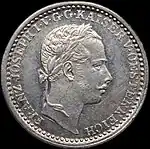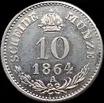 10 крейцеров | 18 | 2 | н/д | рубчатый | серебро 500-й пробы | 1858—1865 | Суммарно[Тиражи 5] — не менее 11 636 194[23] |