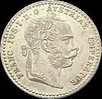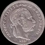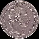 20 крейцеров | 21 | 2,7 | 1 | гладкий | серебро 500-й пробы | 1868—1870, 1872 | Суммарно[Тиражи 7] — 91 060 620[24] |