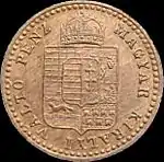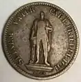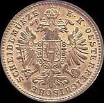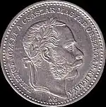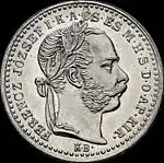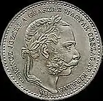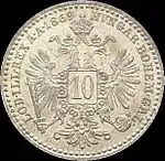 10 крейцеров | 18 | 1,66 | 0,8 | гладкий | серебро 400-й пробы | 1867, 1868 | Суммарно[Тиражи 11] — до 4 262 483[20] |