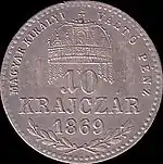 10 крейцеров | 18 | 1,66 | 0,8 | гладкий | серебро 400-й пробы | 1868, 1869 | Суммарно[Тиражи 12] — более 15 494 039[20] |