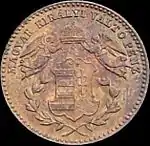 4 крейцера | 27 | 13,2 | 2,9 | гладкий | Медь | 1860—1862, 1864 | Суммарно[Тиражи 3] — 47 050 527[22] |