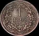 1 крейцер | 19 | 3,33 | 1,5 | гладкий | Медь | 1891, 1892 | Суммарно[Тиражи 10] — 22 142 183[20] |