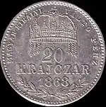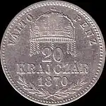 - Тираж 20 крейцеров по годам: 1868 — 29 621 005, 1869 — 31 042 105; 1870 — 29 821 875, 1872 — 575 635.