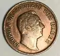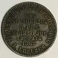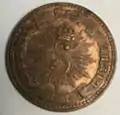 1 крейцер[коммент. 2] | 19 | 3,15[коммент. 3]—3,6[коммент. 4] | 1,25[коммент. 5]—1,5[коммент. 6] | гладкий | Медь | 1858—1863, 1873, 1878, 1879, 1881, 1885, 1891 | Суммарно[Тиражи 2] — не менее 361 млн[22] |