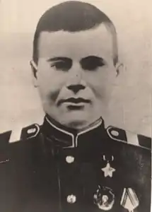 Указом Президиума Верховного Совета СССР «О присвоении звания Героя Советского Союза генералам, офицерскому, сержантскому и рядовому составу Красной Армии» от 10 января 1944 года за «образцовое выполнение боевых заданий командования на фронте борьбы с немецко-фашистскими захватчиками и проявленные при этом отвагу и геройство» был удостоен высокого звания Героя Советского Союза с вручением ордена Ленина и медали «Золотая Звезда» за номером 2248[2][3].