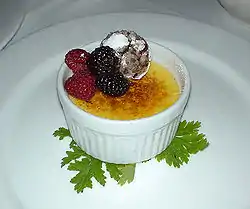 Крем-брюле́ (фр. crème brûlée, букв. — «обожжённые сливки») — десерт из заварного крема с карамельной корочкой. Обычно подаётся комнатной температуры.