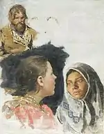 - Репин Илья Ефимович — «Старик-крестьянин, девушка в розовом и молодая крестьянка в сером платке» (HTML). Государственный каталог Музейного фонда Российской Федерации — goskatalog.ru. Дата обращения: 21 июля 2021. Архивировано 22 июня 2019 года.