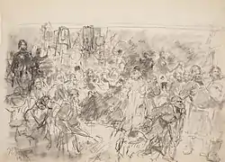 Из эскизов к полотну «Крестный ход в Курской губернии» известен набросок, хранящийся в художественном музее Атенеум в Хельсинки (1878, бумага, графитный карандаш, уголь, 22,2 × 30,6 см, инв. A III 1754:39)[99]. Также упоминался эскиз[100][101] или этюд, который, по состоянию на 1941 год, находился в усадьбе-музее Репина «Пенаты» в Куоккале (ныне Репино)[102].