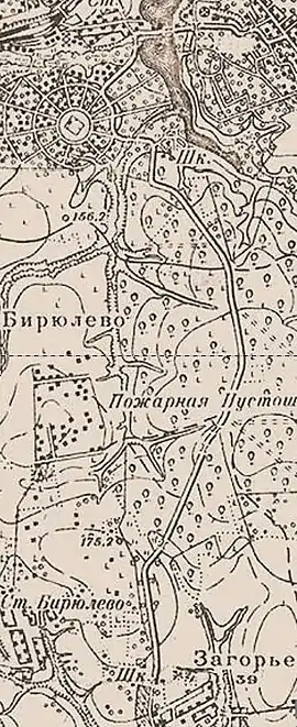 В конце XIX века усадьбы Загорье перешла в собственность купеческого рода Крестовниковых и принадлежала им вплоть до революции 1917 года. При Крестовниковых Загорье стремительно благоустраивалось. В частности были высажены различные виды плодовых деревьев. Благодаря плодородным почвам Загорье всегда славилось своими ягодниками и фруктовыми садами. Большинство жителей занималось садоводством. Магазины и рынки Москвы были наполнены сельскохозяйственной продукцией, выращенной в Загорье. Крестовниковы не желали, чтобы строительство новой железной дороги от Павельца к Москве, испортило здешние сады и огороды, и, возможно, они даже откупились, чтобы «чугунка» проследовала от Булатникова, обойдя Загорье. Таким образом, возникла необходимость в дороге, которая связала бы Загорье с уже существовавшей тогда станцией Царицыно-Дачное Московско-Курской железной дороги.