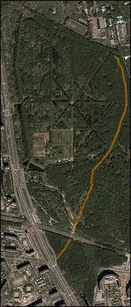 Крестовниковское шоссе начиналось в районе пересечения современных Ягодной и Загорьевской улиц и направлялось на север, к месту, где сейчас находится дом 36/20 по Липецкой улице. Начальный участок был полностью утрачен в ходе массовой застройки 4-го микрорайона Загорья в 70-х годах прошлого века. Далее шоссе проходило по пожарной пустоши, существовавшей в то время на территории Бирюлёвского лесопарка. Сегодня данный фрагмент сохранился в виде 3-ей Сосновой аллеи и Большого полукольца Бирюлевского дендропарка, разделённых железнодорожной веткой. Следующий участок – это часть современной 3-ей Радиальной улицы, выполнявшая функцию подъездной дороги к военному городку. Далее вдоль проезда Кошкина и 1-ой Радиальной улицы шоссе выходило к станции в поселке Царицыно.