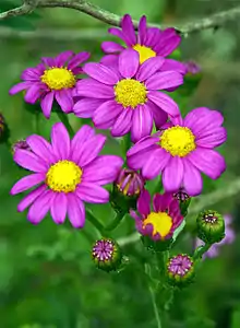 - Крестовник изящный (Senecio elegans). Однолетник из Южной Африки высотой до 60 см. Цветки пурпурно-розовые.