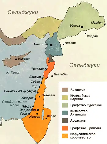 - Иерусалимское королевство, просуществовало вплоть до падения Акры в 1291 году. В подчинении у королевства находилось несколько вассальных сеньорий, в том числе четыре наиболее крупные: