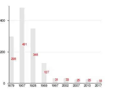 | 1879 | 1907 | 1928 | 1969 | 1997 | 2002 | 2007[18] |
