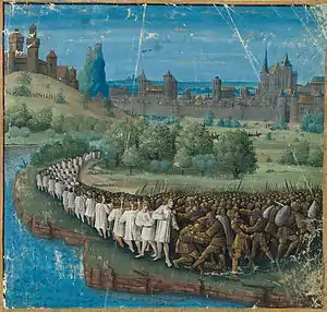 ![]() Крестовый поход бедняков. Миниатюра Жана Коломба из книги Себастьена Мамро «Походы французов в Утремер» (1474). | |||