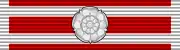 Лента длиной 32 мм первоначально была белой с красными широкими горизонтальными полосами, но в июле 1919 года была заменена на нынешнюю белую с красными широкими диагональными полосами под углом 45 градусов[2].