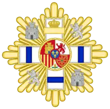 Звезда степени Большого креста представляет собой равноконечный прямой крест под королевской короной c королевским гербом в круглом щите в центре, наложенный на восьмиконечную золотую звезду. На звезду, между перекладинами креста наложены серебряные изображения замка (символа Кастилии) и льва (символа Леона). Цвет эмали креста в зависимости от дивизиона: