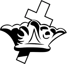 Крест и корона — традиционный христианский символ, применяемый в оформлении фасадов церквей и в геральдике. Корона символизирует небесную награду после преодоления земного искушения, представленного крестом.