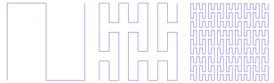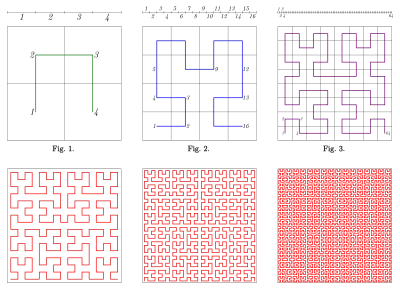 Годом позже Давид Гильберт опубликовал в том же журнале другой вариант построения Пеано[2]. Статья Гильберта была первой статьёй, в которой был помещен рисунок, помогающий представить технику построения. По существу, это был тот же рисунок, что и приведённый здесь. Аналитическая форма кривой Гильберта, однако, существенно сложнее, чем у Пеано.